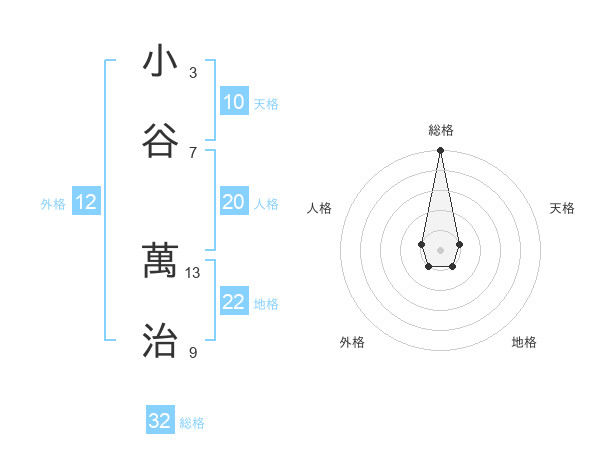 小谷 萬治さんを姓名の画数から五運を鑑定