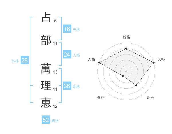 占部 萬理恵さんを姓名の画数から五運を鑑定