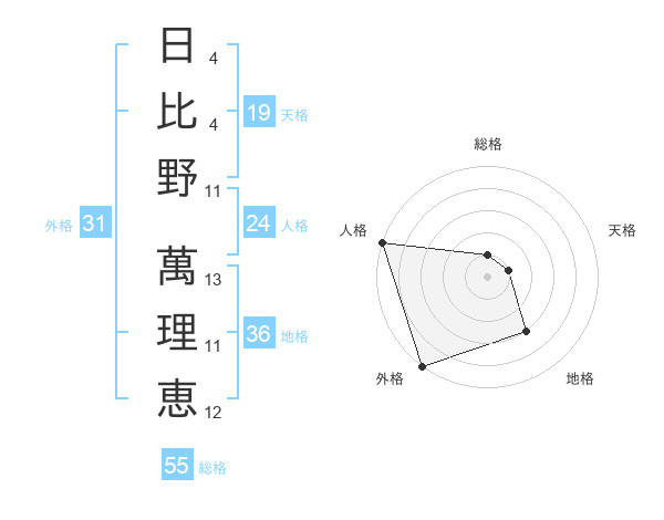 日比野 萬理恵さんを姓名の画数から五運を鑑定