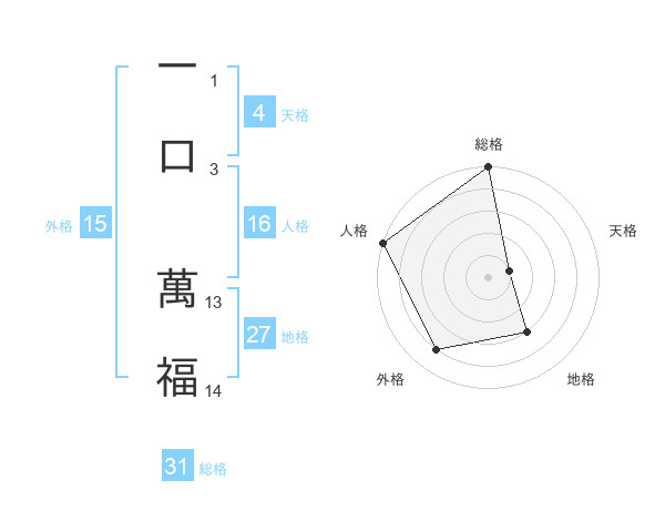 家系が持つ宿命的な運勢を表します。祖先から受け継いだ苗字ですので自分の力が及びません。家柄を象徴します。