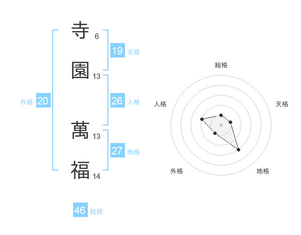寺園 萬福さんの外格は20画の1点!