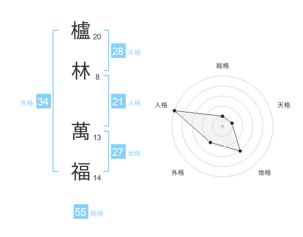 櫨林 萬福さんを姓名の画数から五運を鑑定