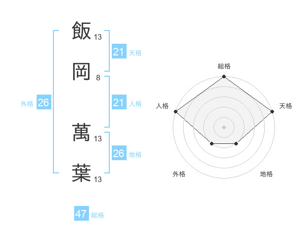 飯岡 萬葉さんの天格は21画の5点!