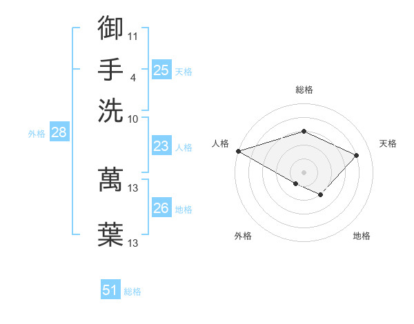 御手洗 萬葉さんを姓名の画数から五運を鑑定