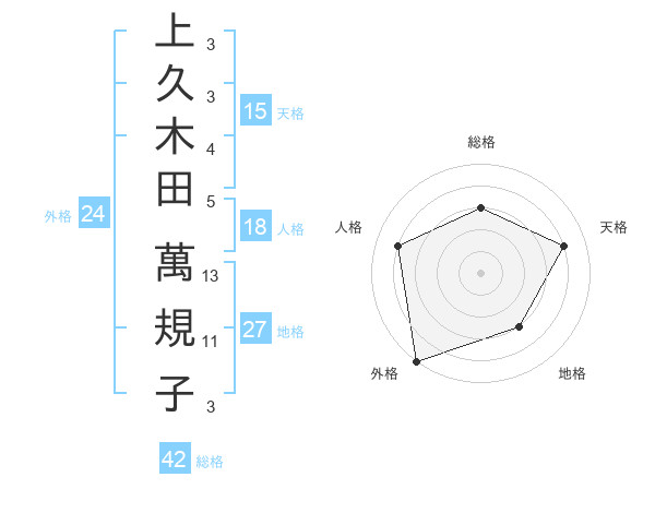 上久木田 萬規子さんを姓名の画数から五運を鑑定