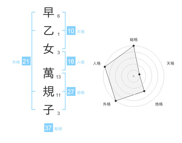 早乙女 萬規子さんを姓名の画数から五運を鑑定