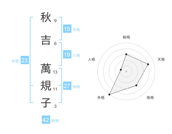 秋吉 萬規子さんを姓名の画数から五運を鑑定