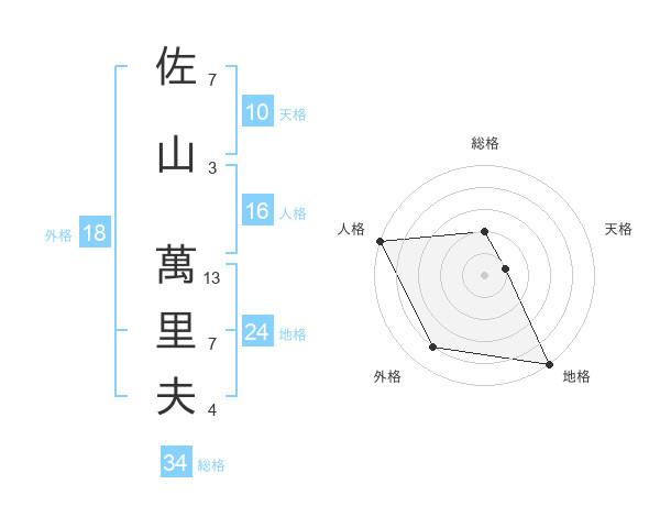 佐山 萬里夫さんの総格は34画の2点!