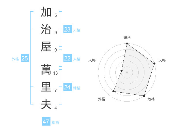 加治屋 萬里夫さんを姓名の画数から五運を鑑定
