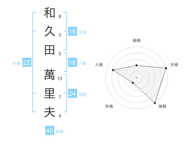 和久田 萬里夫さんを姓名の画数から五運を鑑定
