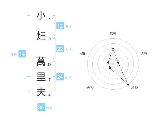 小畑 萬里夫さんを姓名の画数から五運を鑑定