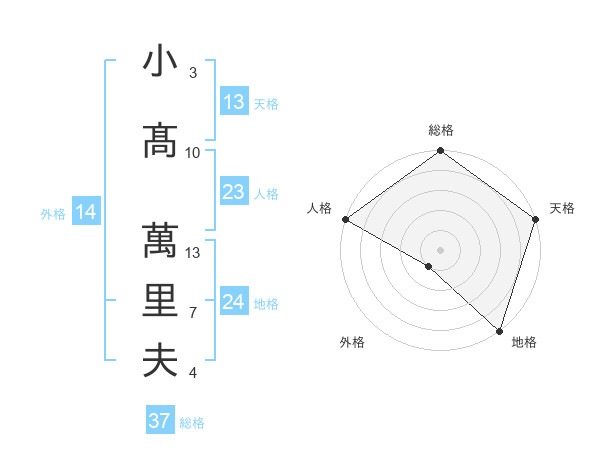 小髙 萬里夫さんを姓名の画数から五運を鑑定