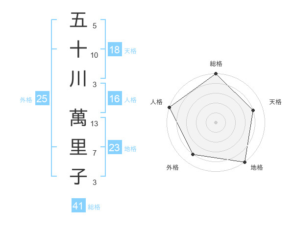 五十川 萬里子さんを姓名の画数から五運を鑑定