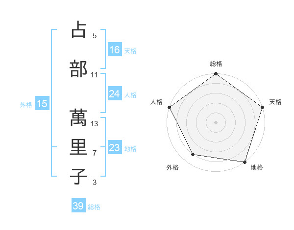 占部 萬里子さんを姓名の画数から五運を鑑定