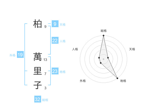 柏 萬里子さんの総格は32画の5点!