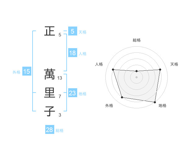 正 萬里子さんの地格は23画の5点