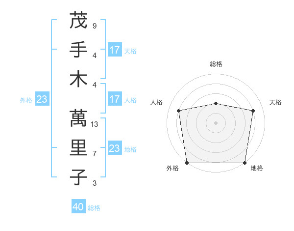 茂手木 萬里子さんの外格は23画の5点!