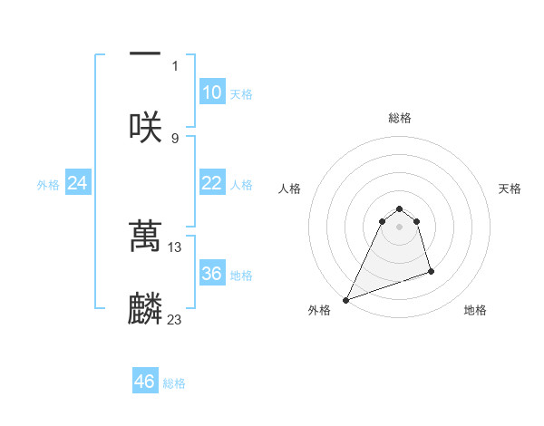 一咲 萬麟さんを姓名の画数から五運を鑑定
