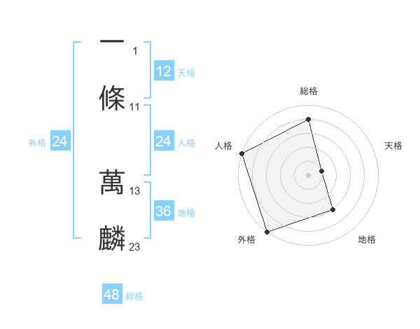 一條 萬麟さんの総格は48画の4点!