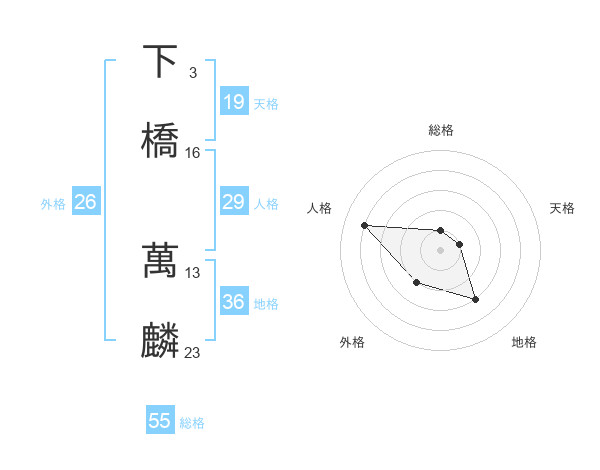 下橋 萬麟さんの総格は55画の1点!