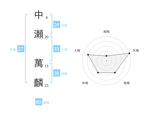 中瀬 萬麟さんを姓名の画数から五運を鑑定