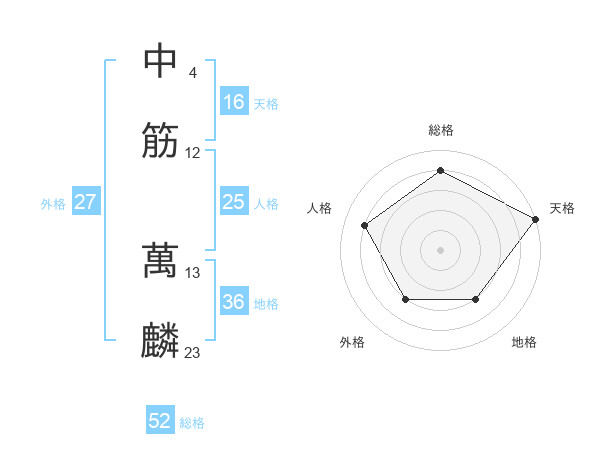 中筋 萬麟さんを姓名の画数から五運を鑑定