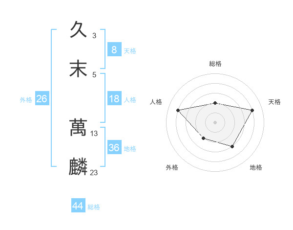 久末 萬麟さんの総格は44画の2点!