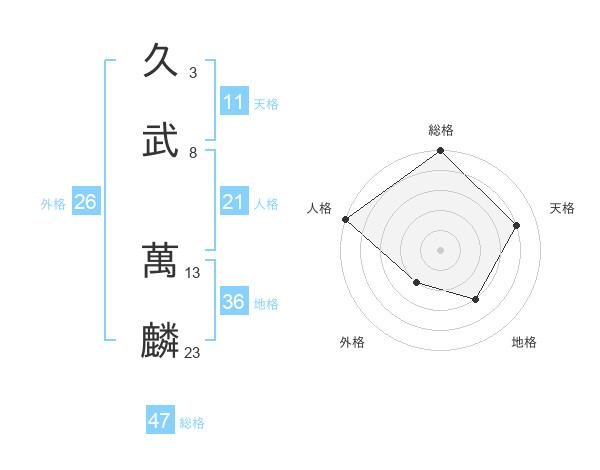 久武 萬麟さんの総格は47画の5点!