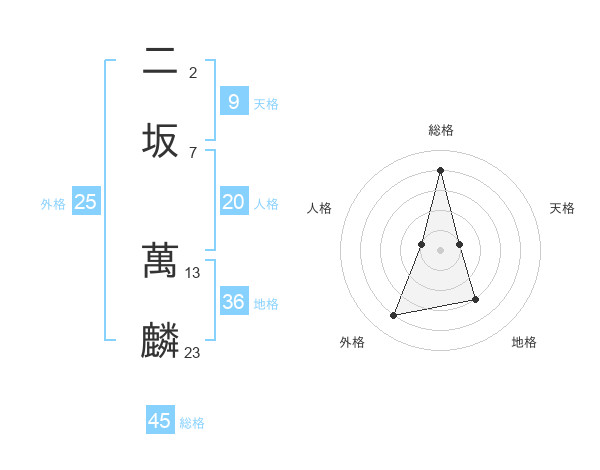 二坂 萬麟さんの総格は45画の4点!