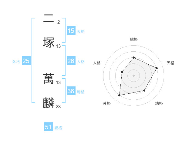 二塚 萬麟さんを姓名の画数から五運を鑑定