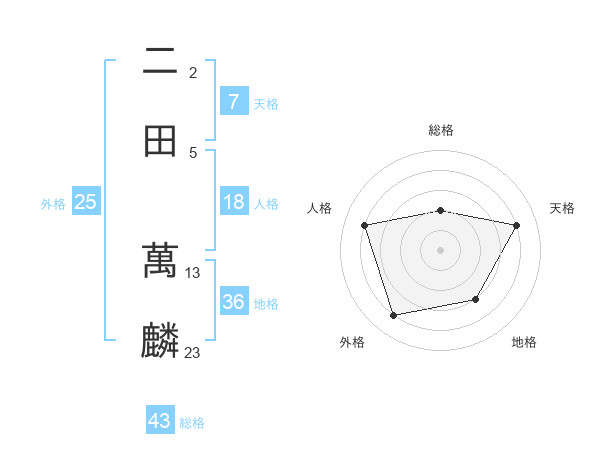 二田 萬麟さんの総格は43画の2点!