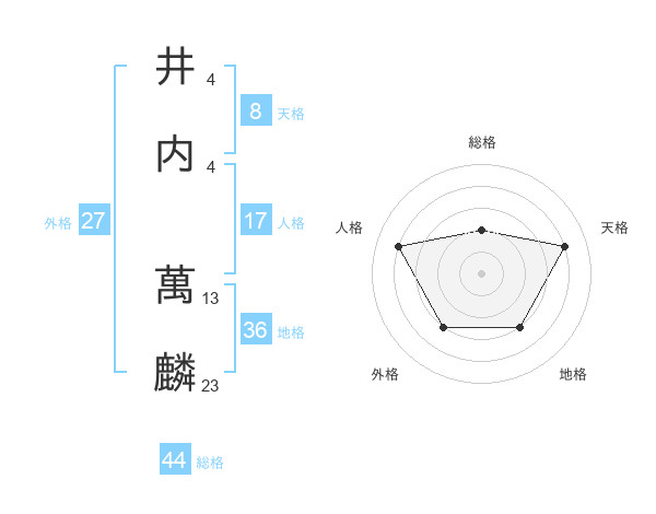 井内 萬麟さんの総格は44画の2点!