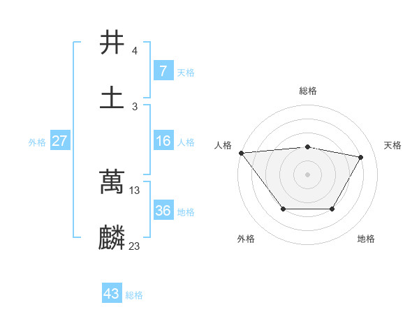 井土 萬麟さんの総格は43画の2点!