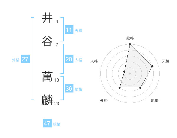 井谷 萬麟さんを姓名の画数から五運を鑑定
