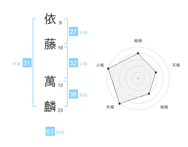 依藤 萬麟さんの総格は63画の4点!