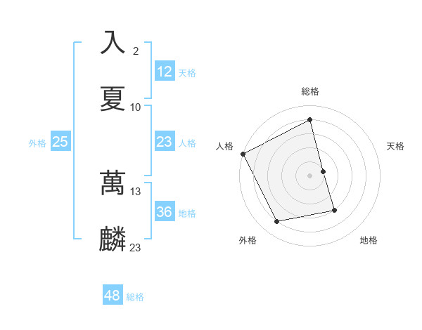 入夏 萬麟さんを姓名の画数から五運を鑑定