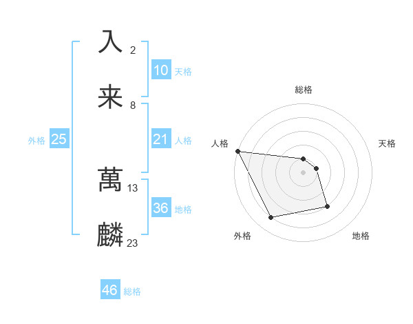 入来 萬麟さんを姓名の画数から五運を鑑定