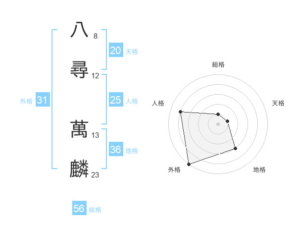 八尋 萬麟さんの総格は56画の1点!