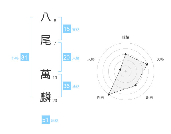 八尾 萬麟さんの総格は51画の3点!