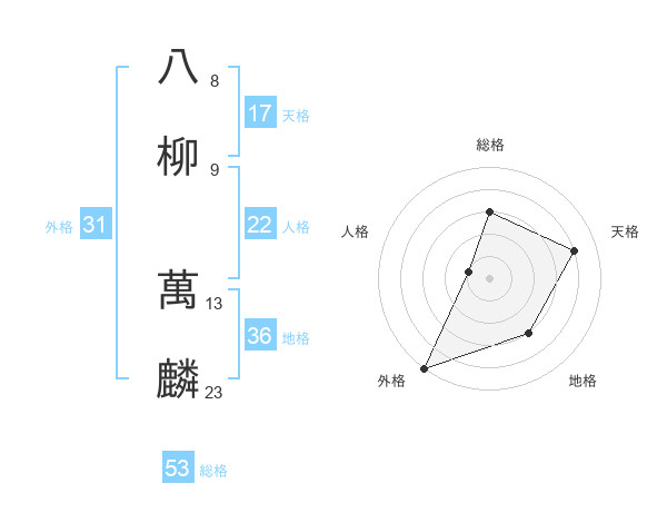 八柳 萬麟さんの天格は17画の4点!