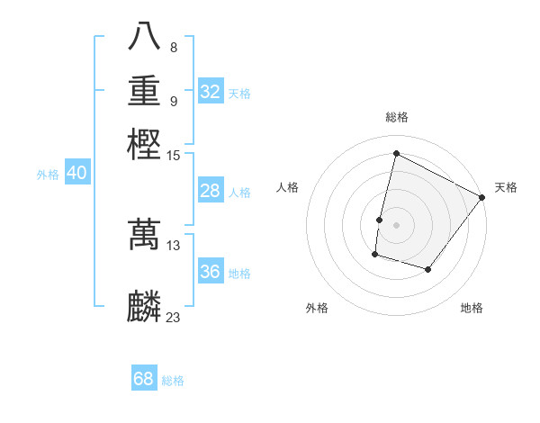 八重樫 萬麟さんを姓名の画数から五運を鑑定