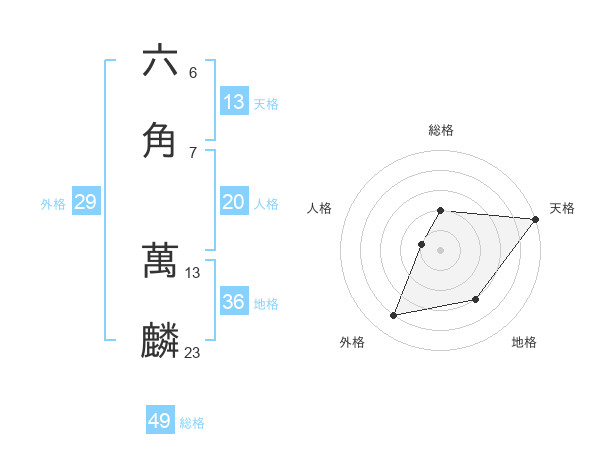 六角 萬麟さんの総格は49画の2点!