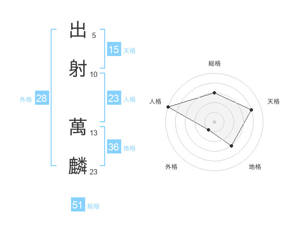 出射 萬麟さんの総格は51画の3点!
