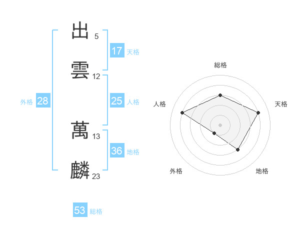 出雲 萬麟さんの総格は53画の3点!