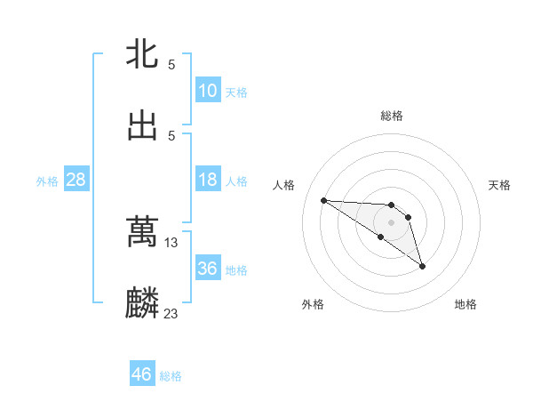 北出 萬麟さんの総格は46画の1点!