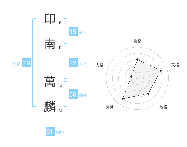 印南 萬麟さんを姓名の画数から五運を鑑定