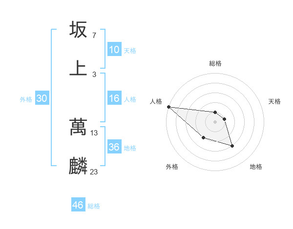 坂上 萬麟さんを姓名の画数から五運を鑑定