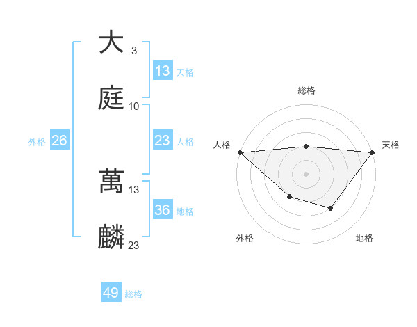 大庭 萬麟さんの天格は13画の5点!