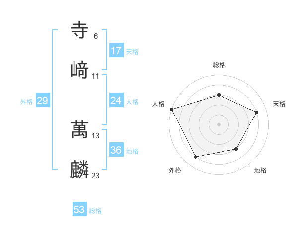 寺﨑 萬麟さんを姓名の画数から五運を鑑定