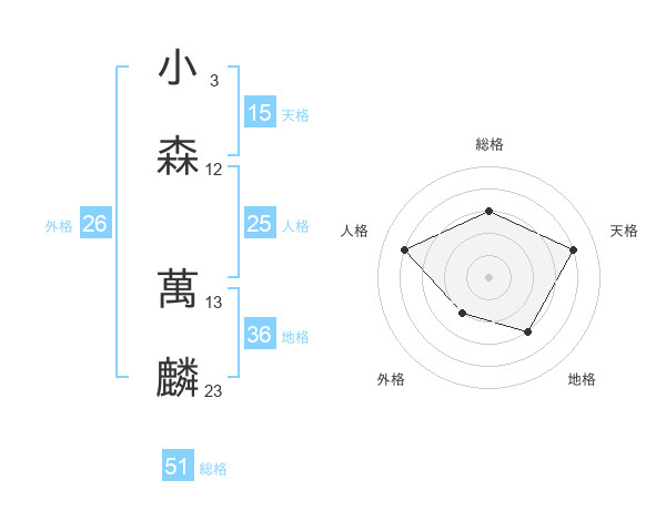 小森 萬麟さんを姓名の画数から五運を鑑定